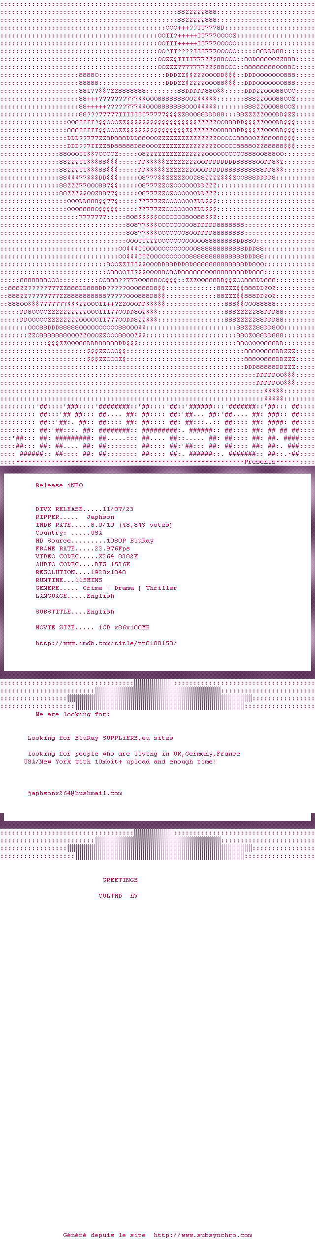 Voir le nfo de la release Millers.Crossing.1990.1080p.BluRay.x264-Japhson