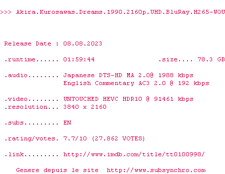 La release Akira.Kurosawas.Dreams.1990.2160p.UHD.BluRay.H265-WOU est en 4K