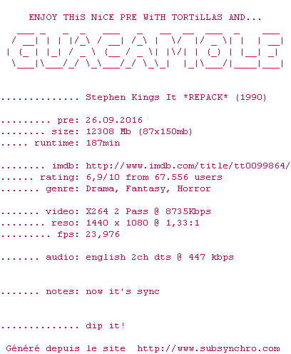 NFO de Stephen.Kings.It.1990.1080p.BluRay.x264.REPACK-GUACAMOLE