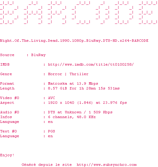 Nfo de la release Night.Of.The.Living.Dead.1990.1080p.BluRay.DTS-HD.x264-BARC0DE
