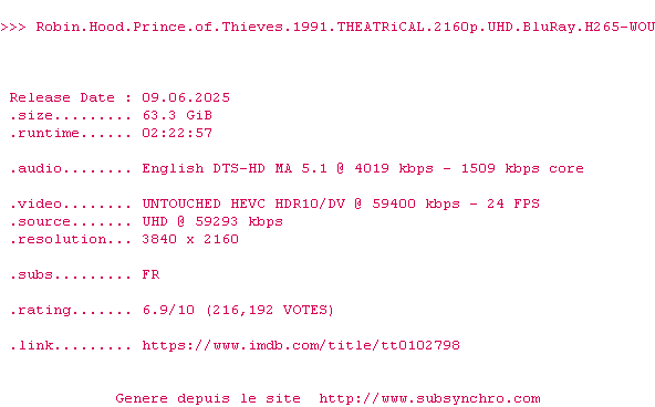 Ce film fait partie de la saga Robin des bois