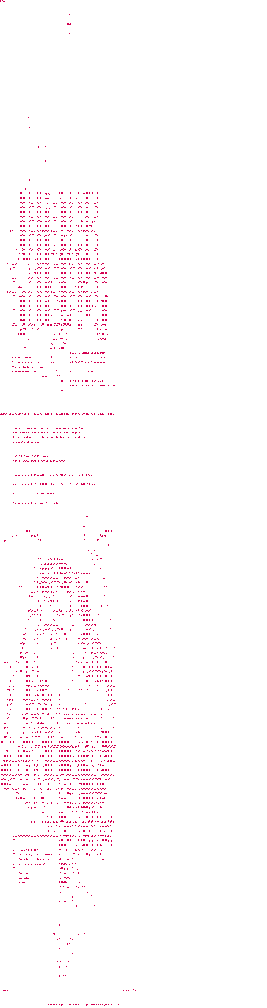Voir le nfo de la release Showdown.In.Little.Tokyo.1991.ALTERNATIVE.MASTER.UNRATED.BDRIP.x264-WATCHABLE