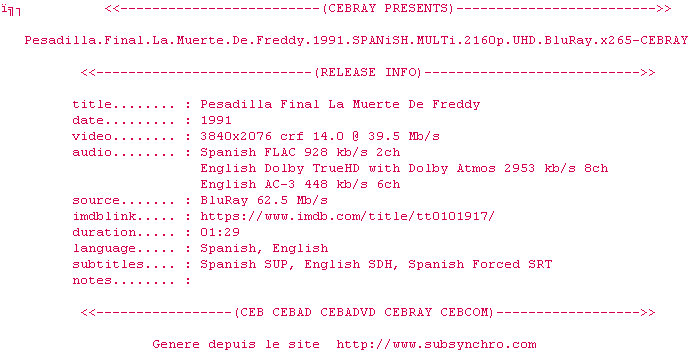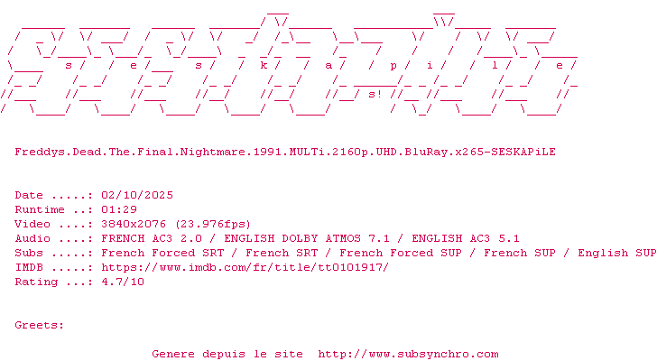 Ce film fait partie de la saga Freddy
