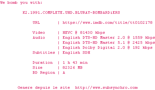 Telechargez le RSS « Fichier de la release K2.1991.COMPLETE.UHD.BLURAY-B0MBARDiERS »