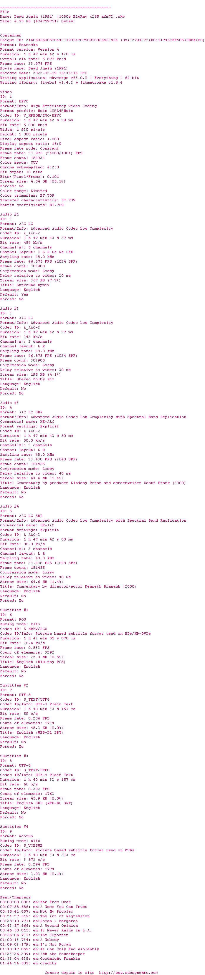 Commentez le fichier Dead-Again-1991-1080p-BluRay-x265-afm72.srt