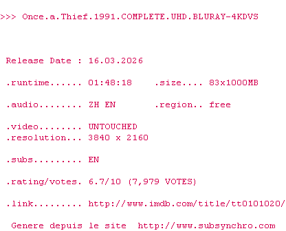 Telechargez le RSS « Fichier de la release Once.A.Thief.1991.COMPLETE.UHD.BLURAY-4KDVS »