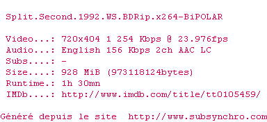 Voir le nfo de la release Split.Second.1992.WS.BDRip.x264-BiPOLAR
