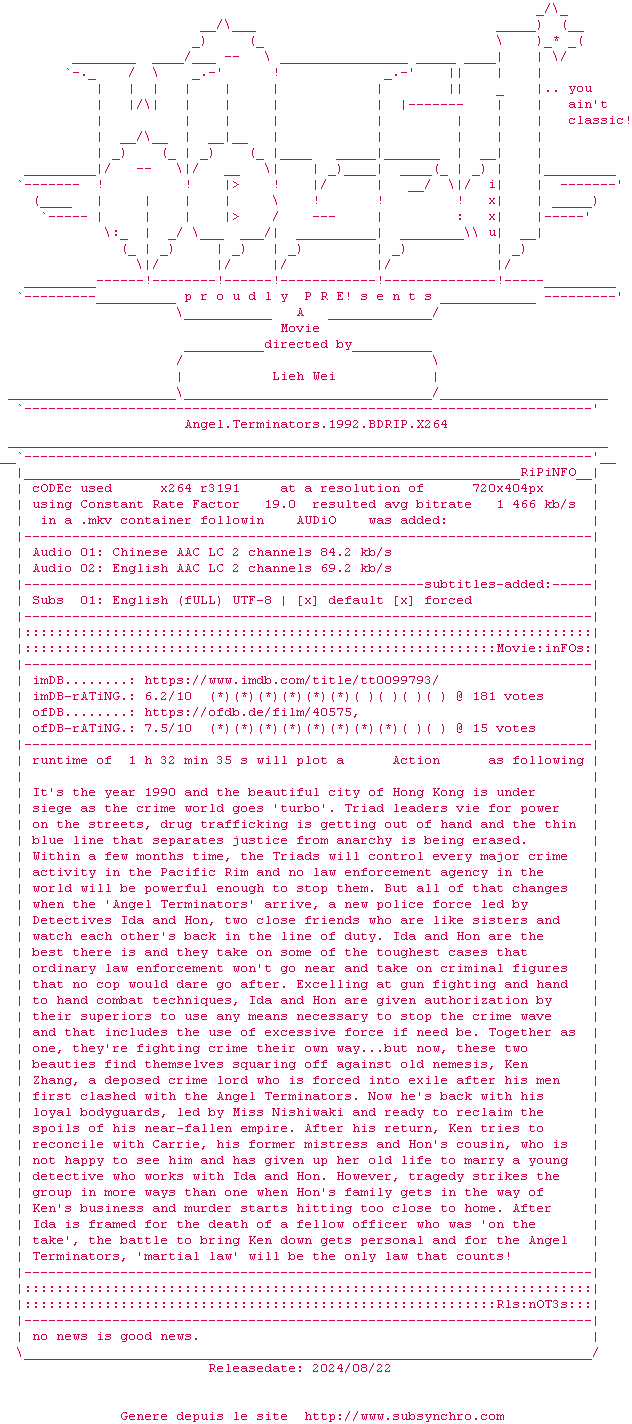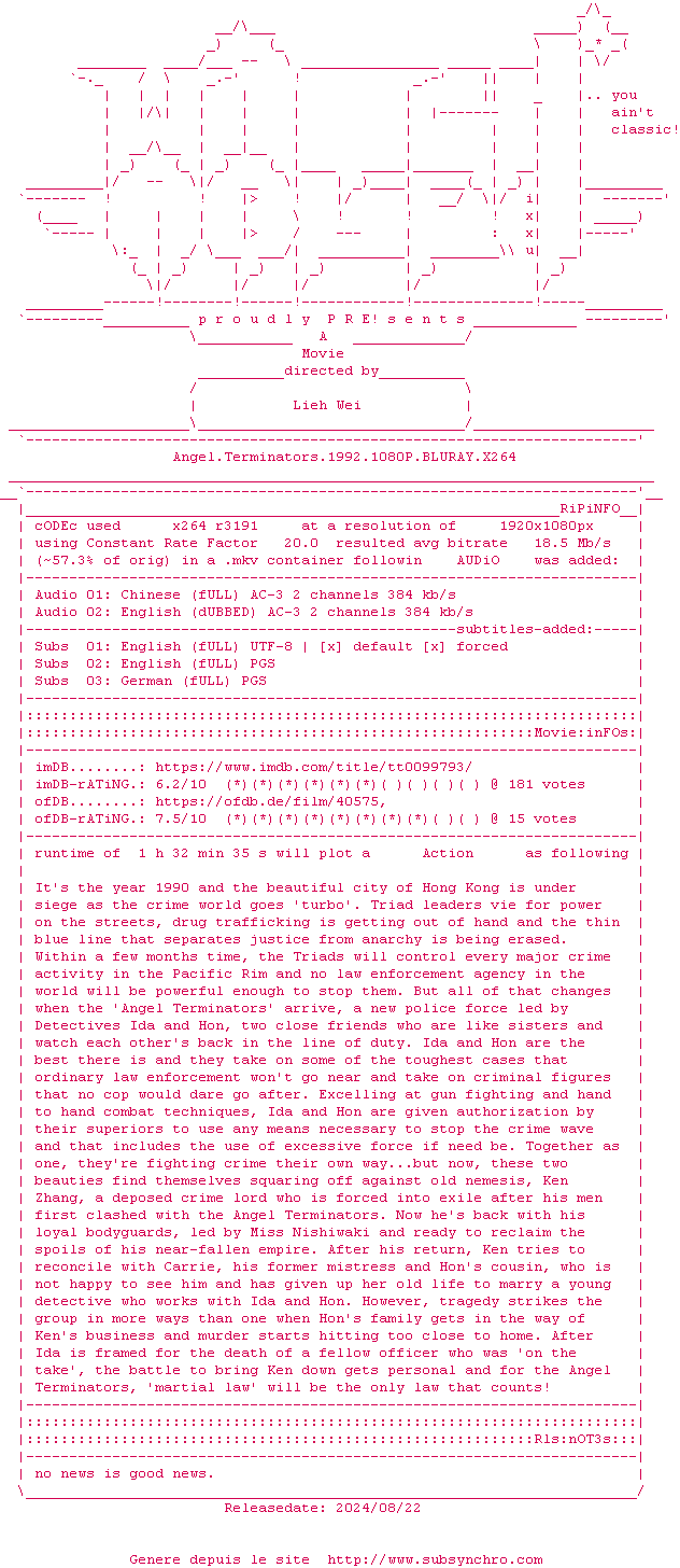 Voir le nfo de la release Angel.Terminators.1992.1080P.BLURAY.x264-WATCHABLE