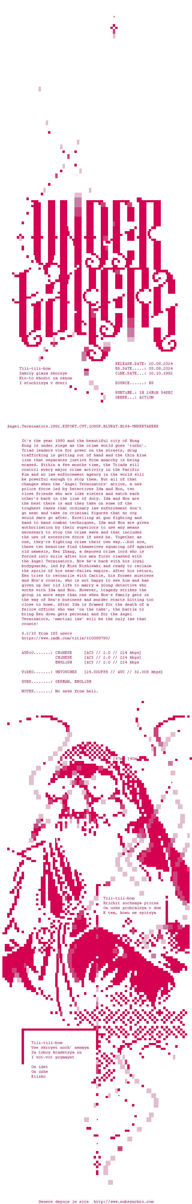 Voir le nfo de la release Angel.Terminators.1992.EXPORT.CUT.1080P.BLURAY.H264-UNDERTAKERS