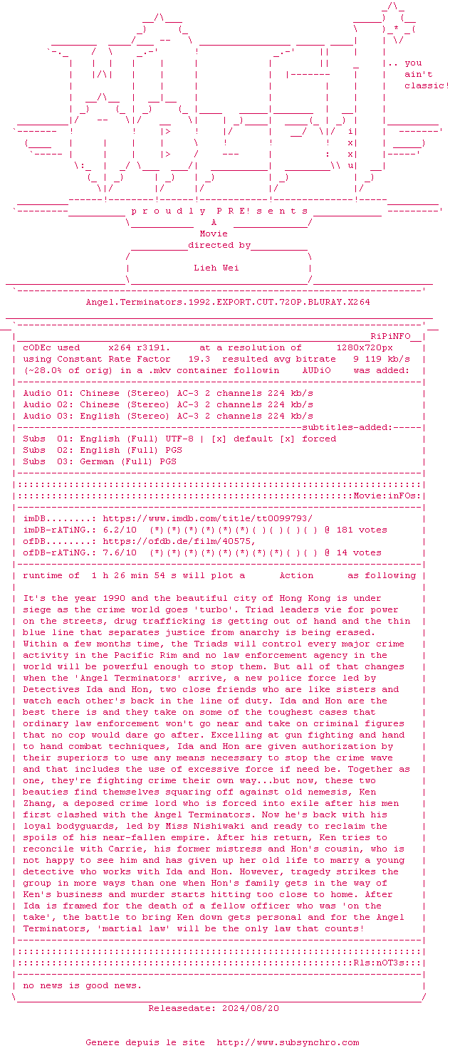 Voir le nfo de la release Angel.Terminators.1992.EXPORT.CUT.720P.BLURAY.x264-WATCHABLE