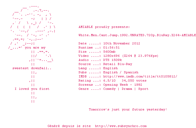 Voir le nfo de la release White.Men.Cant.Jump.1992.UNRATED.1080p.BluRay.X264-AMIABLE
