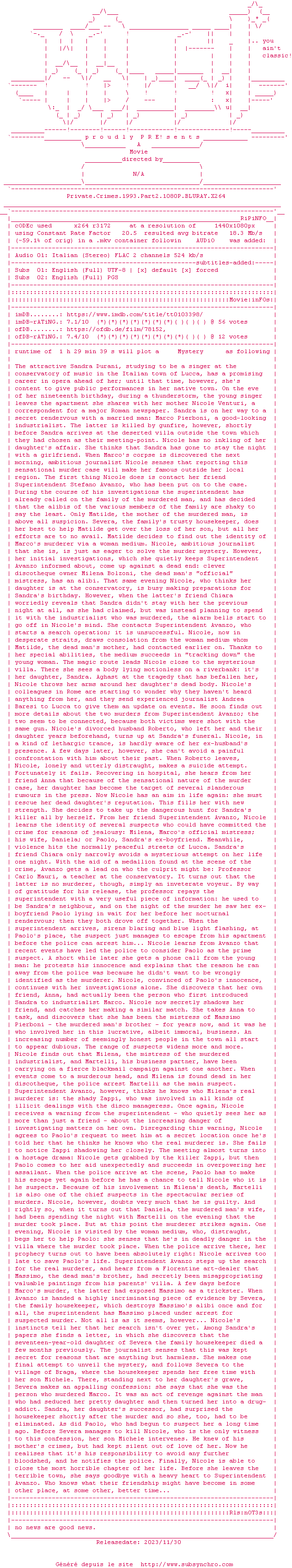 Voir le nfo de la release Private.Crimes.1993.Part4.1080P.BLURAY.x264-WATCHABLE