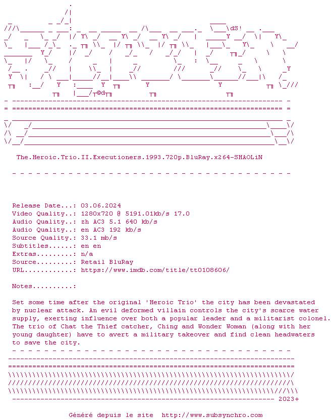 Voir le nfo de la release The.Heroic.Trio.II.Executioners.1993.1080p.BluRay.x264-SHAOLiN