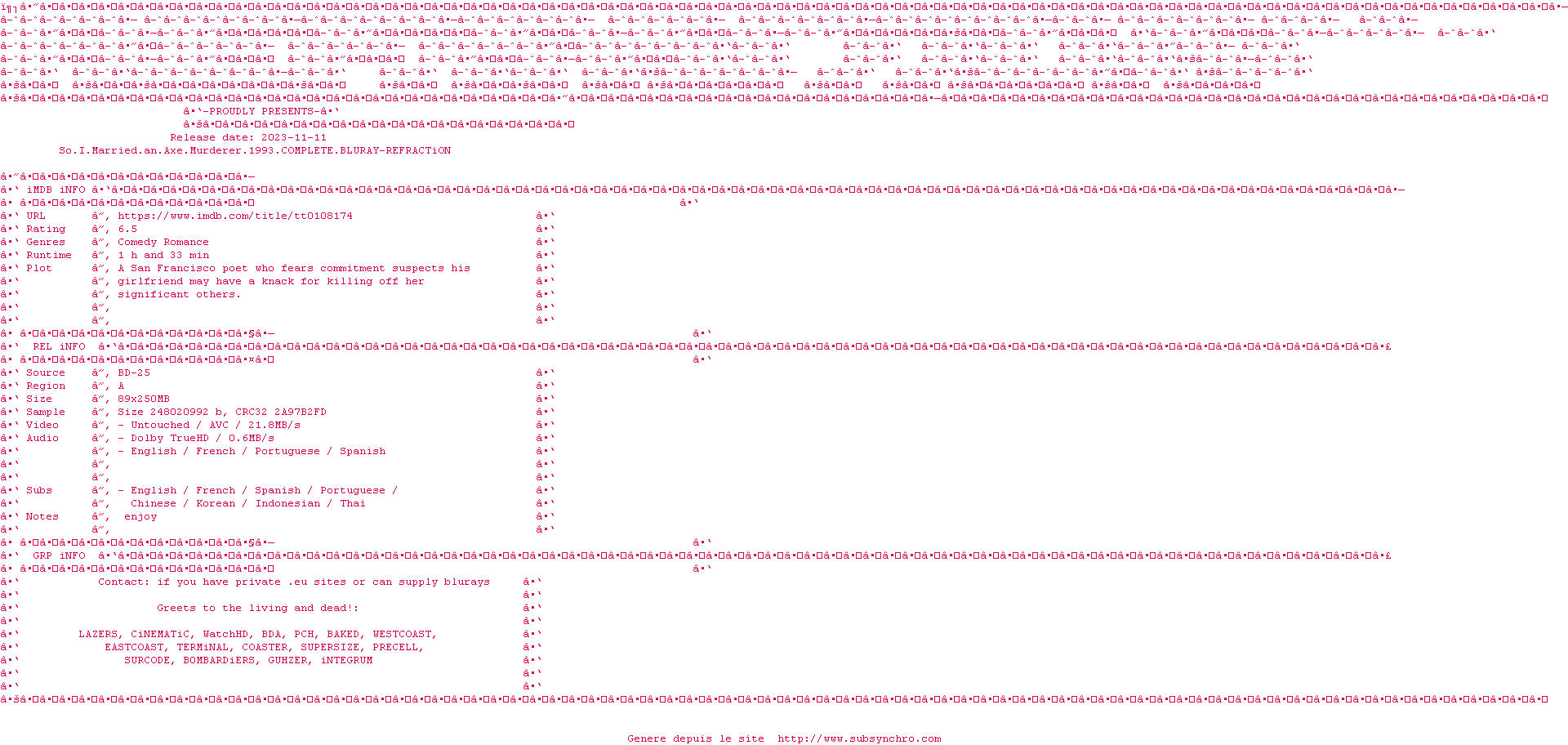 Voir le nfo de la release So.I.Married.An.Axe.Murderer.1993.COMPLETE.BLURAY-REFRACTiON