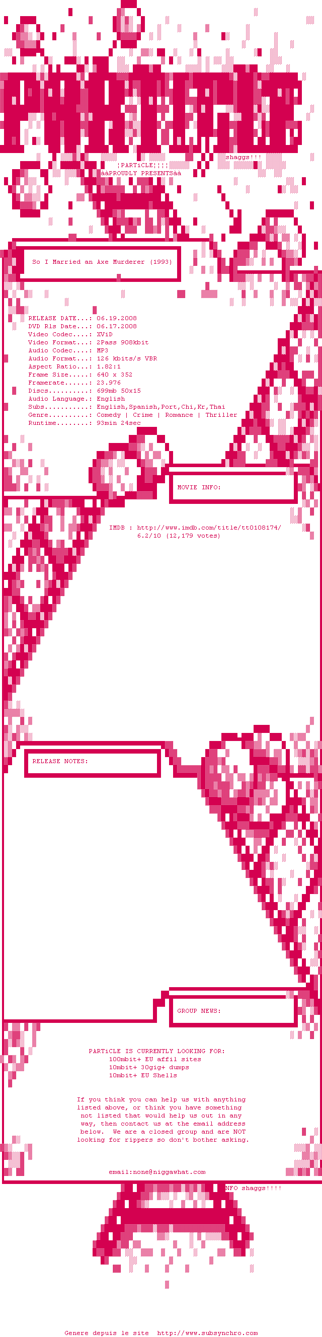 Voir le nfo de la release So.I.Married.An.Axe.Murderer.1993.SE.iNTERNAL.DVDRip.XviD-PARTiCLE