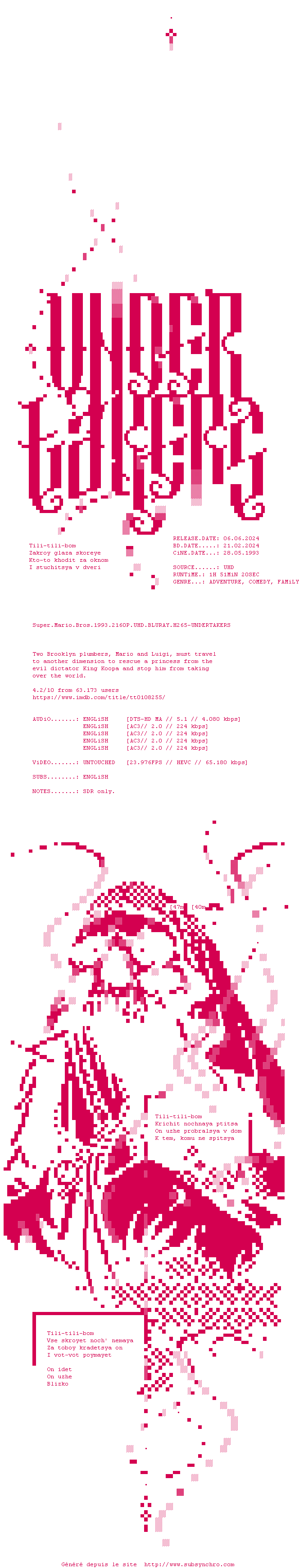 Voir le nfo de la release Super.Mario.Bros.1993.2160P.UHD.BLURAY.H265-UNDERTAKERS