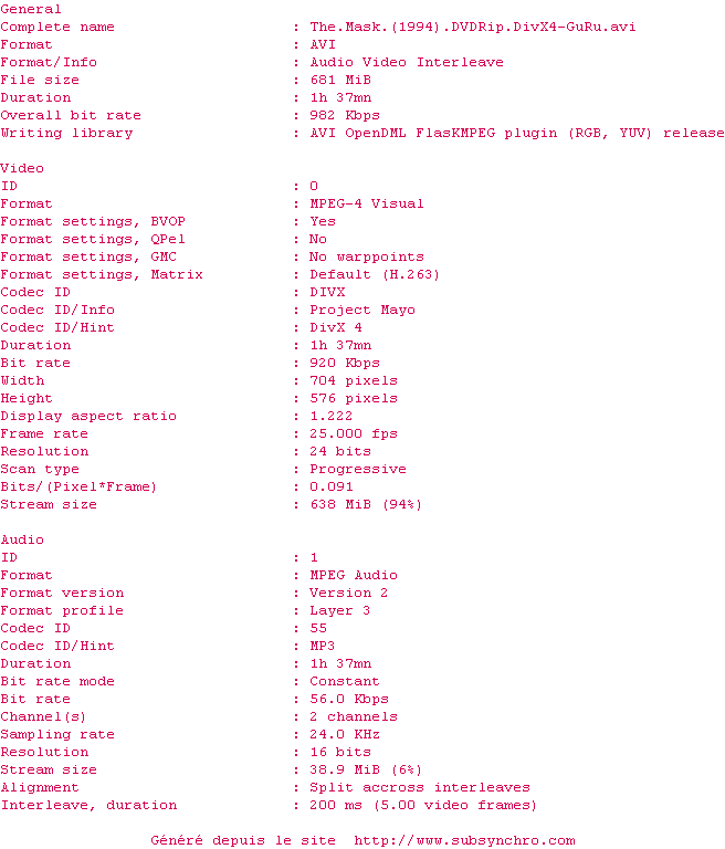 Voir le nfo de la release The.Mask.1994.DVDRip.DivX4-GuRu
