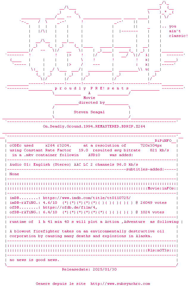 Voir le nfo de la release On.Deadly.Ground.1994.720P.BLURAY.x264-WATCHABLE