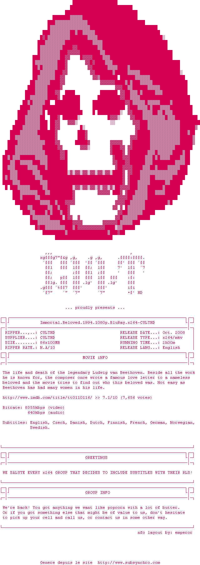 À la mort de Beethoven, Anton Schindler, son légataire testamentaire, découvre un testament annulant les précédents, dans lequel le compositeur exprime son intention de léguer tous ses biens à son "immortelle bien-aimée". Contre l'avis de la famille, Schindler décide d'accomplir la volonté du maître et pour cela de découvrir l'identité de cette mystérieuse femme.