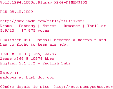 Wolf.1994.720p.Bluray.X264-DIMENSION.srt Ce fichier a été testé et validé par Stank07 Ajouté par Stank07 Ajoute le 14-03-2016 17:28:51 Format : SRT Italique : Oui Taille : 0.00Ko Telechargement : 60 Testé par le membre Ajouter cette release à ma collection en cas de telechargement des sous-titres 0 0 0 Telecharger le ZiP contenant NFO, Affiche, Sous-titre (*.srt) Commentez le fichier Wolf.1994.720p.Bluray.X264-DIMENSION.srt Commentez le fichier Wolf.1994.720p.Bluray.X264-DIMENSION.srt Commentez ce fichier Le fichier 10452-1457972931.srt n'existe pas ! Telechargez le RSS « Fichier de la release Wolf.1994.1080p.Bluray.x264-DIMENSION » Retour au film « Wolf »