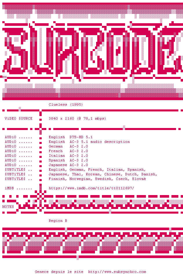 Voir le nfo de la release Clueless.1995.COMPLETE.UHD.BLURAY-SURCODE