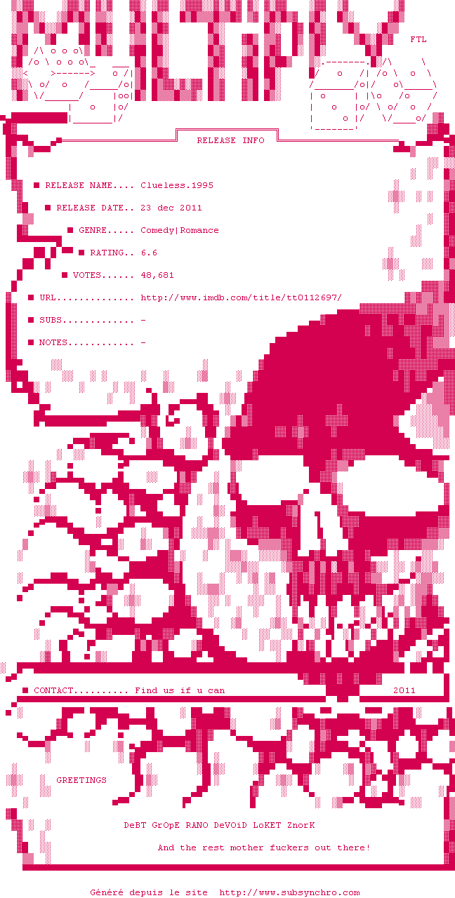 Voir le nfo de la release Clueless.1995.iNTERNAL.DVDRip.XViD-MULTiPLY