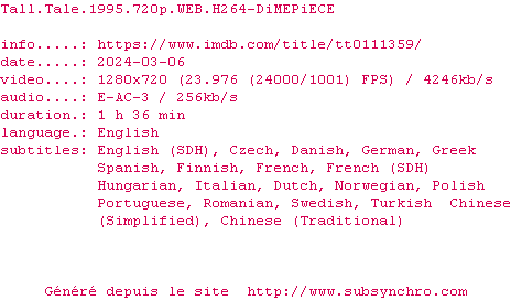 | FW | Tall.Tale.1995.MULTi.1080p.WEB.H264-FW OpenSubtitles | 0 fichier |