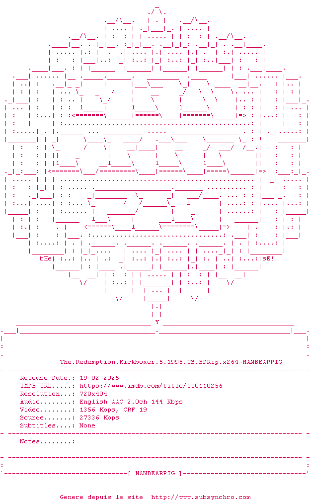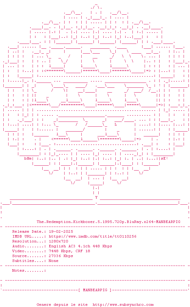 Voir le nfo de la release The.Redemption.Kickboxer.5.1995.WS.BDRip.x264-MANBEARPIG
