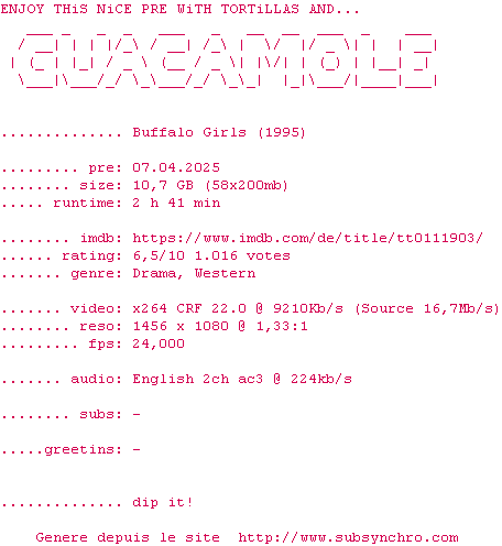 Voir le nfo de la release Buffalo.Girls.1995.MULTi.COMPLETE.BLURAY-LIM