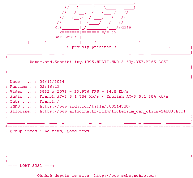 Voir le nfo de la release Sense.And.Sensibility.1995.MULTI.HDR.2160p.WEB.H265-LOST