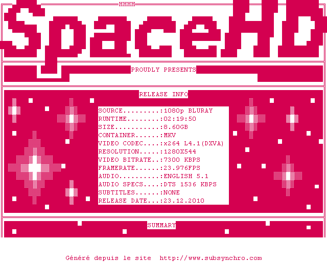 Il n'y a actuellement aucun sous-titre pour cette release. Cliquez ici pour en ajouter un.