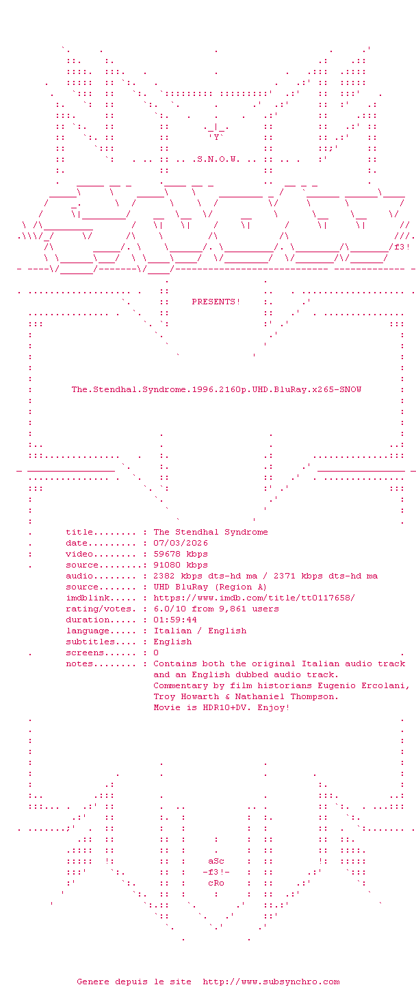 La release The.Stendhal.Syndrome.1996.2160p.UHD.BluRay.x265-SNOW est en 4K