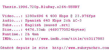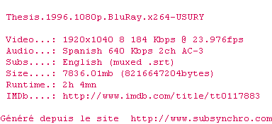 Voir le nfo de la release Thesis.1996.720p.BluRay.x264-USURY