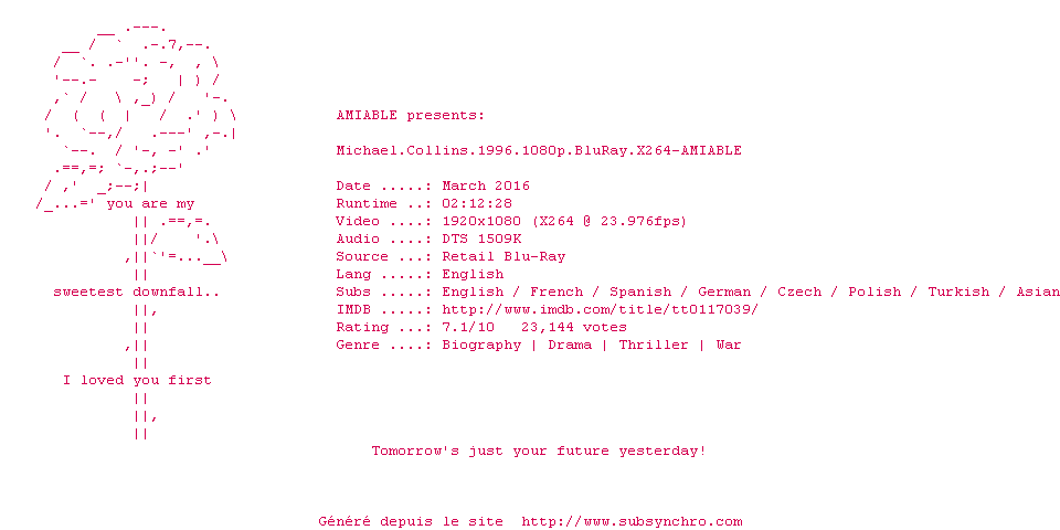 Voir le nfo de la release Michael.Collins.1996.1080p.BluRay.x264-AMIABLE