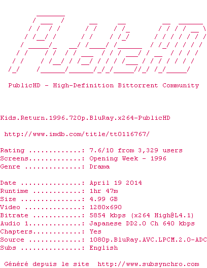 Voir le nfo de la release Kids.Return.1996.720p.BluRay.x264-PublicHD