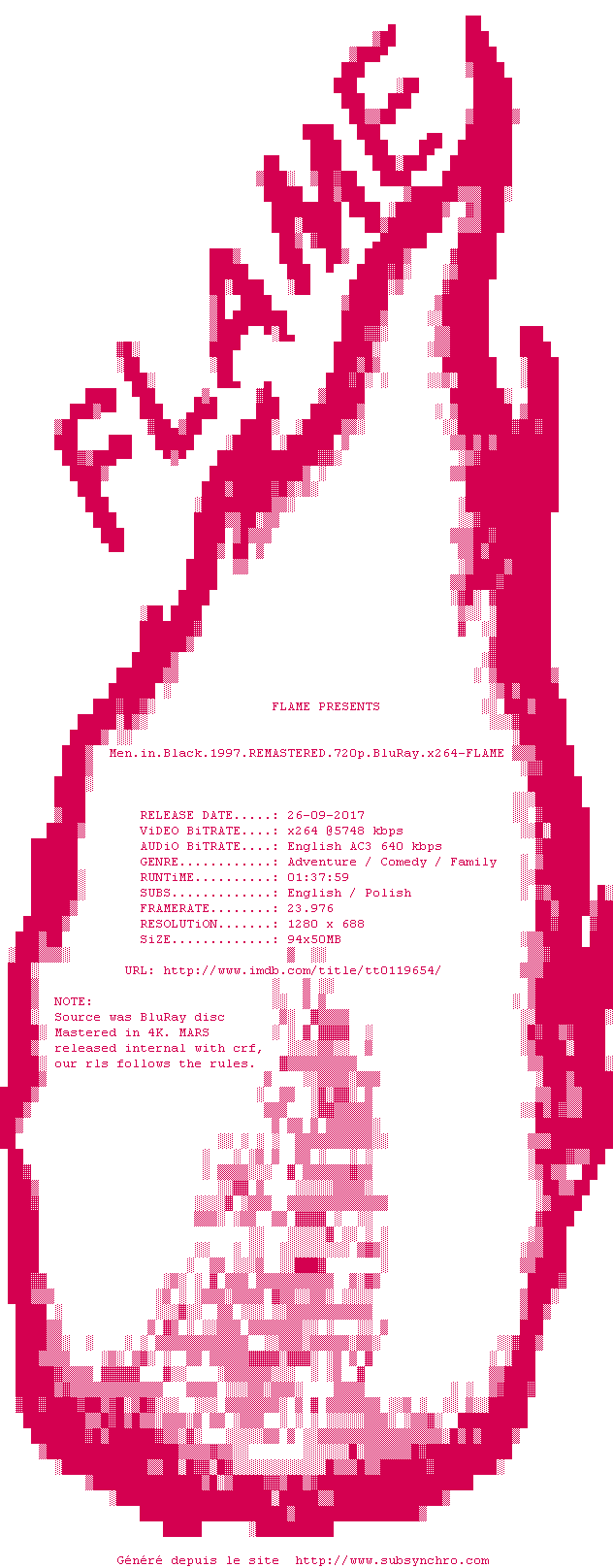Voir le nfo de la release Men.In.Black.1997.REMASTERED.BDRip.x264-FLAME