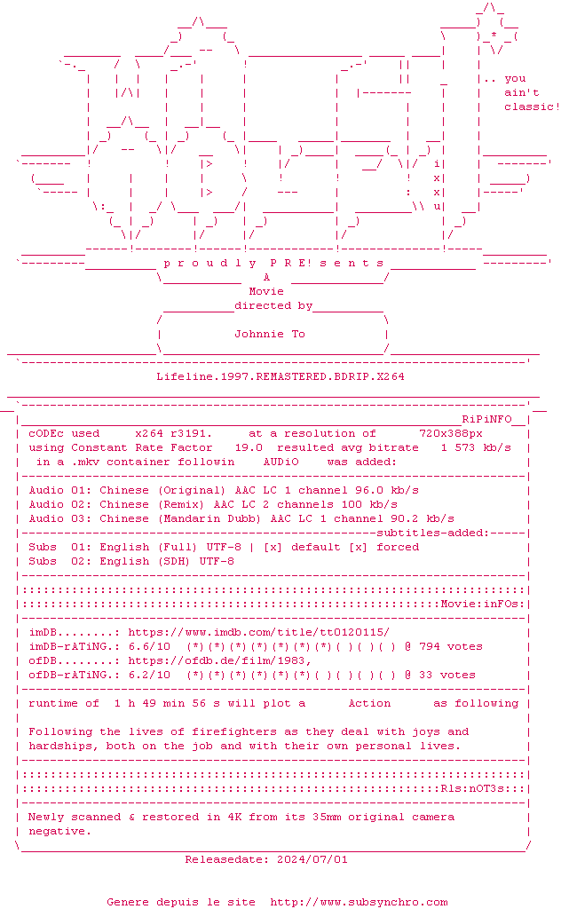Voir le nfo de la release Lifeline.1997.2160P.UHD.BLURAY.x265-WATCHABLE