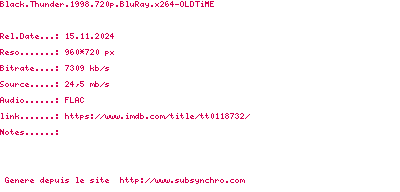 Voir le nfo de la release Black.Thunder.1998.1080p.BluRay.x264-OLDTiME