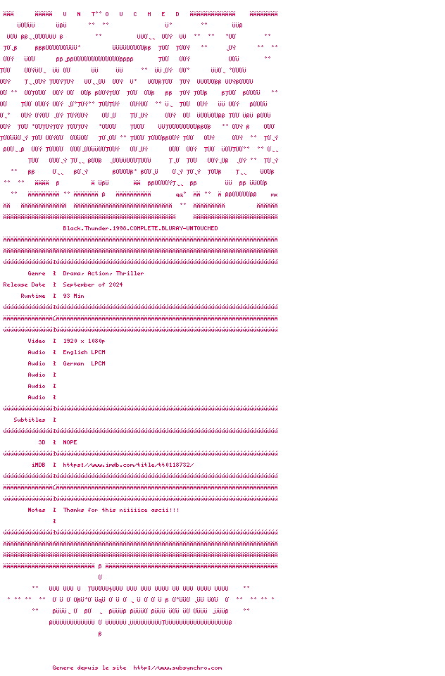 Voir le nfo de la release Black.Thunder.1998.COMPLETE.BLURAY-UNTOUCHED