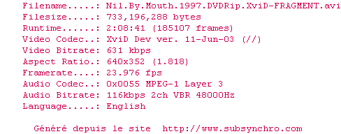 Voir le nfo de la release Nil.By.Mouth.1997.DVDRip.XviD-FRAGMENT