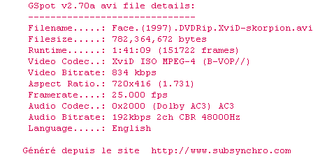 Voir le nfo de la release Face.1997.DVDRIP.XviD.AC3.iNTERNAL-ACF