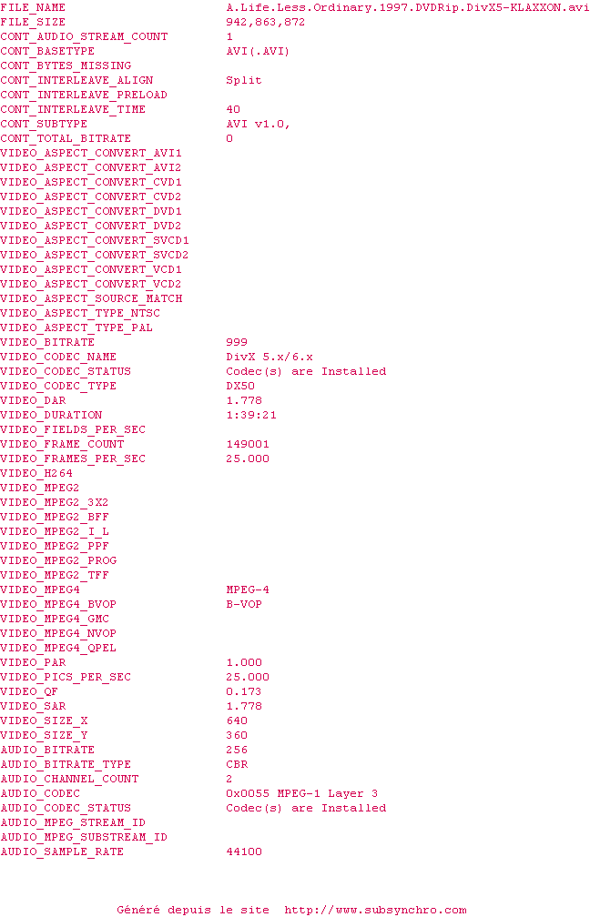 A.Life.Less.Ordinary.1997.DVDRip.DivX5-KLAXXON.srt Ajouté par Ultimhate Ajoute le 27-03-2011 05:20:42 Format : SRT Italique : Non Taille : 0.00Ko Telechargement : 139 Ajouter cette release à ma collection en cas de telechargement des sous-titres 0 0 0 Telecharger le ZiP contenant NFO, Affiche, Sous-titre (*.srt) Commentez le fichier A.Life.Less.Ordinary.1997.DVDRip.DivX5-KLAXXON.srt Commentez le fichier A.Life.Less.Ordinary.1997.DVDRip.DivX5-KLAXXON.srt Commentez ce fichier Le fichier 138-1301196076.srt n'existe pas ! Telechargez le RSS « Fichier de la release A.Life.Less.Ordinary.1997.DVDRip.DivX5-KLAXXON » Retour au film « Une vie moins ordinaire »