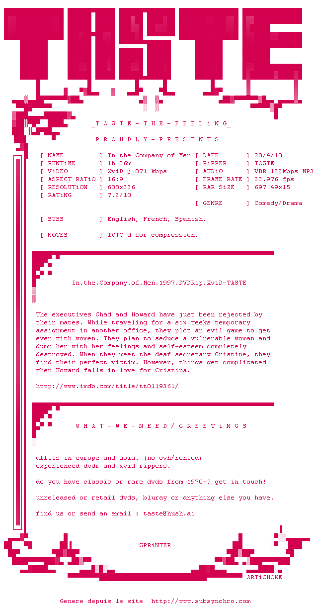 testTelecharger le ZiP contenant NFO, Affiche, Sous-titre (*.srt)