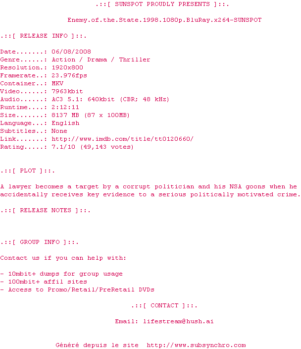 Ennemi d'État (Enemy of the State) , realise en 1998