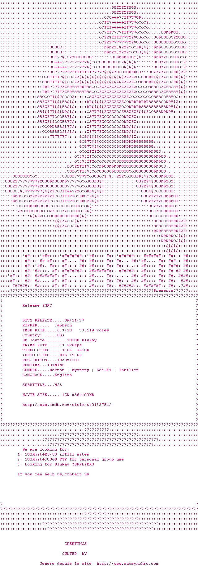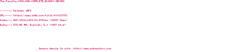 Voir le nfo de la release The.Faculty.1998.OAR.COMPLETE.BLURAY-INCUBO