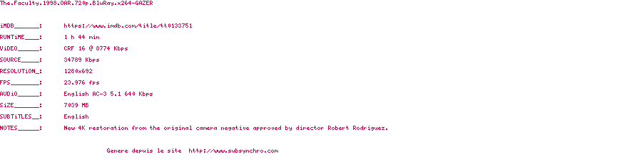Voir le nfo de la release The.Faculty.1998.OAR.720p.BluRay.x264-GAZER
