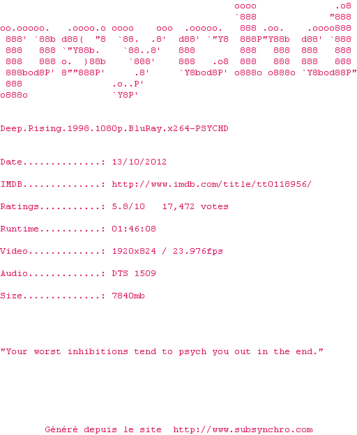 J'avais vu ce film pendant la fête du cinema à l'époque et j'en garde un bon souvenir, serie B qui s'assume...