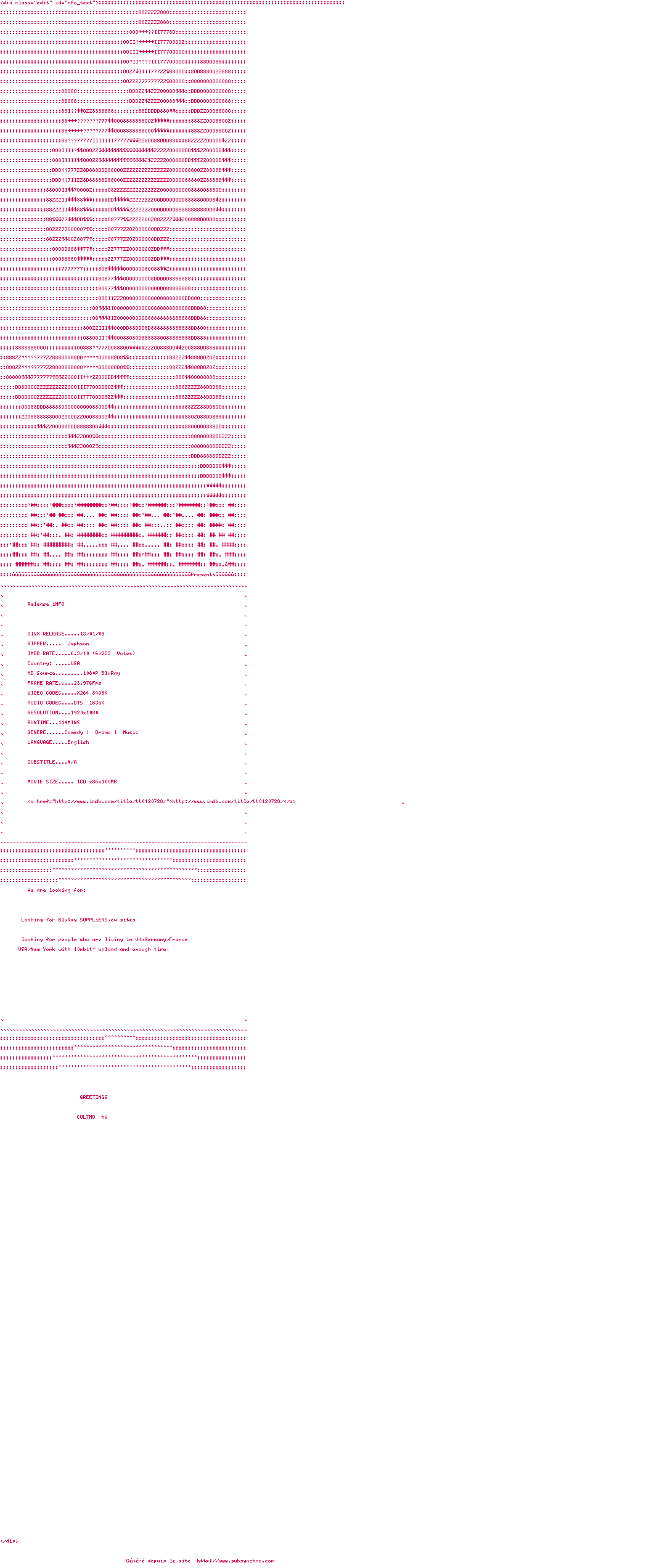 Voir le nfo de la release The.Last.Days.Of.Disco.1998.1080p.BluRay.x264-Japhson