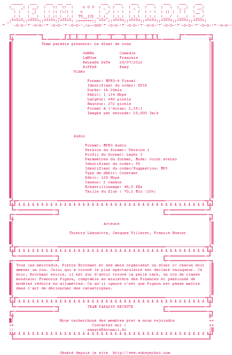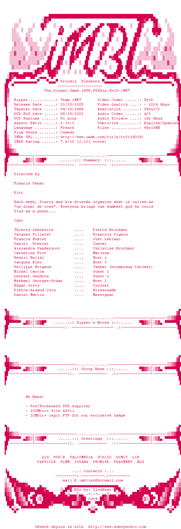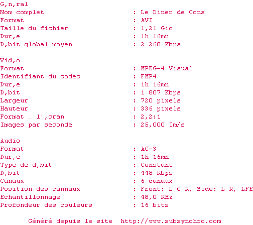 Voir le nfo de la release LE.DINER.DE.CONS.french.DVDRiP.AC3-pekpok2