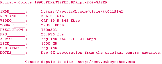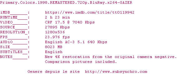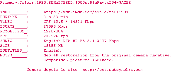 Le petit-fils d'un des leaders noirs ayant milité pour la cause des droits civiques pour sa communauté, Henry Burton, jeune idéaliste, est à la recherche d'une belle et noble cause. C'est ainsi qu'il entre en politique et qu'il se joint à la campagne présidentielle de Jack Stanton, gouverneur progressiste d'un petit État du sud des États-Unis où ses ancêtres étaient esclaves.